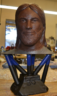 3D Print + castable clay on head;