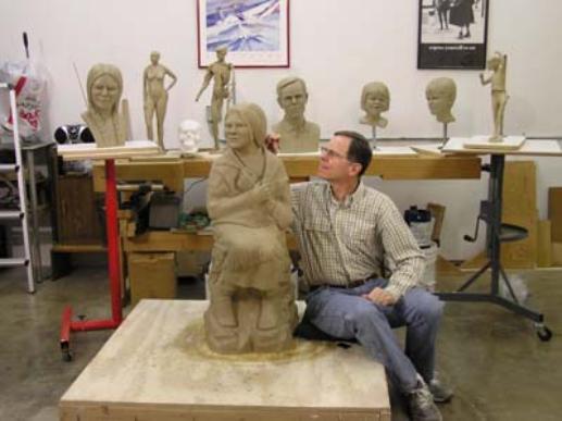 Joe is completing clay on "Little Flower" - an Osage Indian Girl 2006.